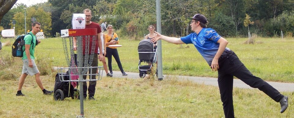 Die Disc-Golf-Elite tummelt sich seit Donnerstag im Dietenbachpark . Für die 36. Deutsche Meisterschaft reisen Spieler·innen aus ganz Deutschland an. 144 Teilnehmer·innen spielen dabei in sieben Divisionen um den Titel. Die 21 Bahnen haben es in sich. Ein Ordner in neongelber Weste hebt eine rote Flagge: Achtung Passanten. Erst kurz später zeigt er mit grün … Achtung, Frisbee: bis Sonntag steigt in Freiburg die Deutsche Meisterschaft im Disc Golf weiterlesen